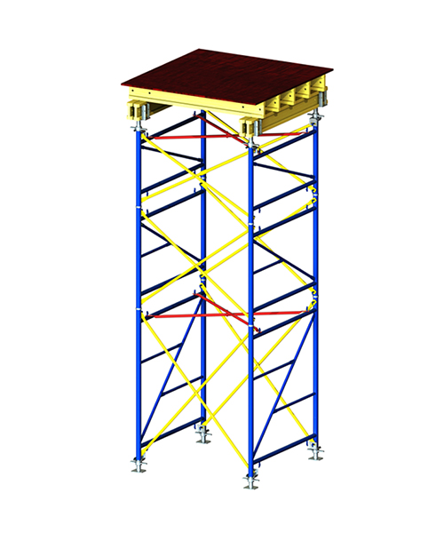 The system of load-bearing scaffoldings Top Tower 70 is based on robust frames made of galvanized steel or powder-coated steel, with maximum load-bearing capacity 70 kN per leg. The Top Tower 70 has broad spectrum of applications in bridge-building, high-rise and industrial construction fields. The system supports different kinds of slabs cast in place (thickness, heights, inclinations etc.), also the Top Tower 70 system is used for shoring of pre-caste elements. TT70 can be adjusted to different layouts and loads owing to variable inter-frame spacing. Assembly is easy, logical and fast, can be done by two workers. Individual adjustment of upper and lower supports is possible.